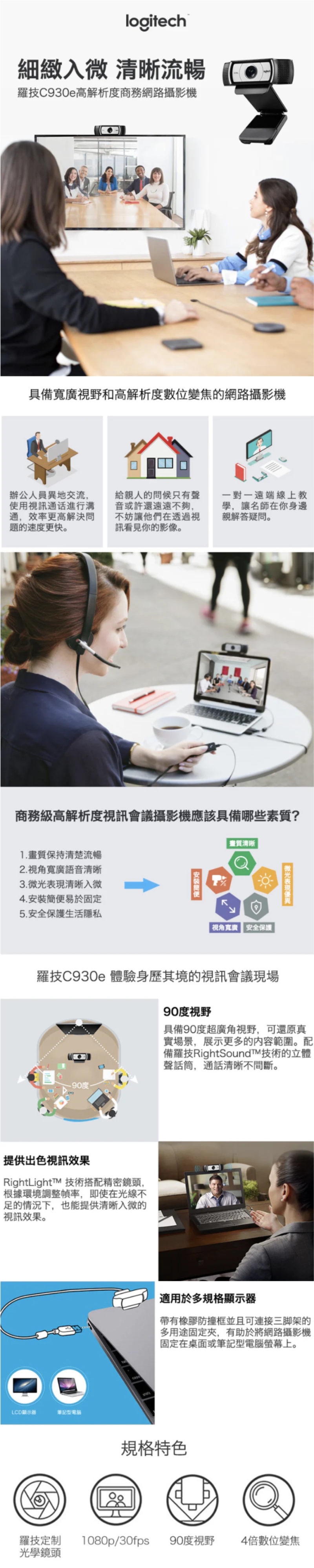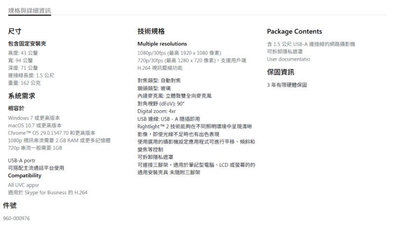 👍支援 H.264 的先進 1080p 商務網路攝影機