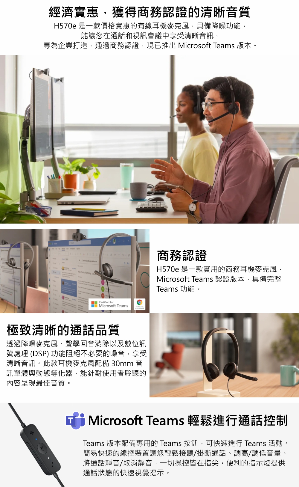 Logitech H570e (Teams 版, Stereo, USB-A) 技術規格
