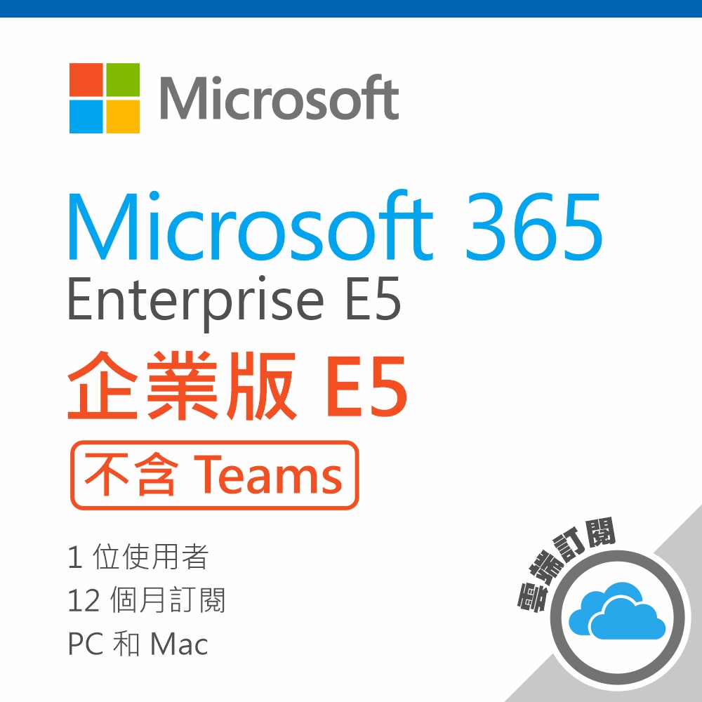 Microsoft 365 E5 (No Teams) 一年訂閱 (CSP)