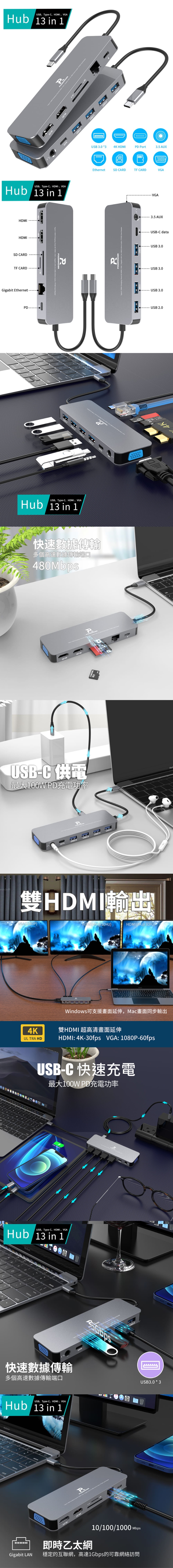 PowerRider HB-P13 十二合一PD充電傳輸集線器