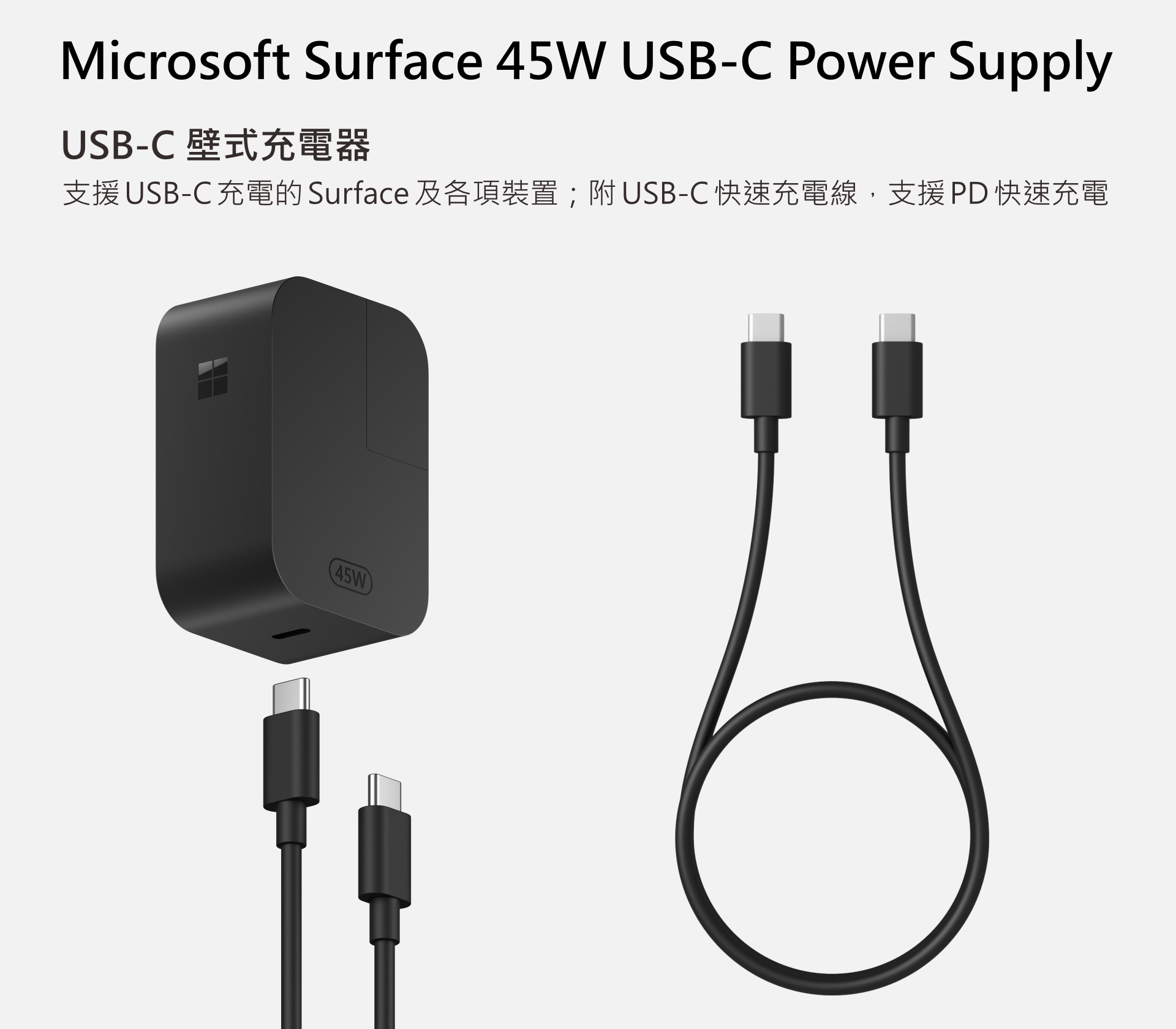 Surface Pro,12吋及Surface Lapto ,13吋僅提供 USB-C 充電